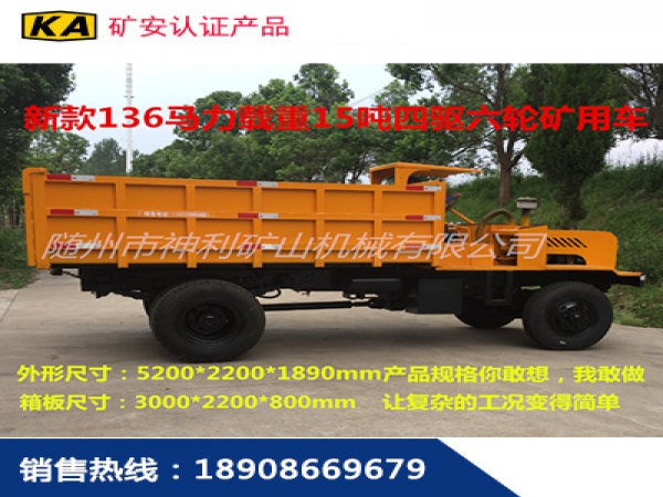 新款載重15噸礦用四驅(qū)車,**大載重爬坡25度,采用分時四輪驅(qū)動氣動**,后驅(qū)四驅(qū)輕松轉(zhuǎn)換,配備136馬力增壓發(fā)動機(jī),12檔帶高低速變速箱,堅固耐用,尺寸可根據(jù)巷道環(huán)境訂制。柴油機(jī)和變速箱直接傳動,動力更強(qiáng)勁,載重量大。